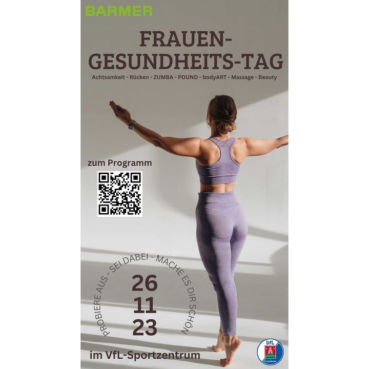 wir führen in Kooperation mit der BARMER am 26.11. einen Frauen-Gesundheitstag mit vielen tollen kostenlosen Angeboten bei uns im VfL-Fitnessbereich durch.