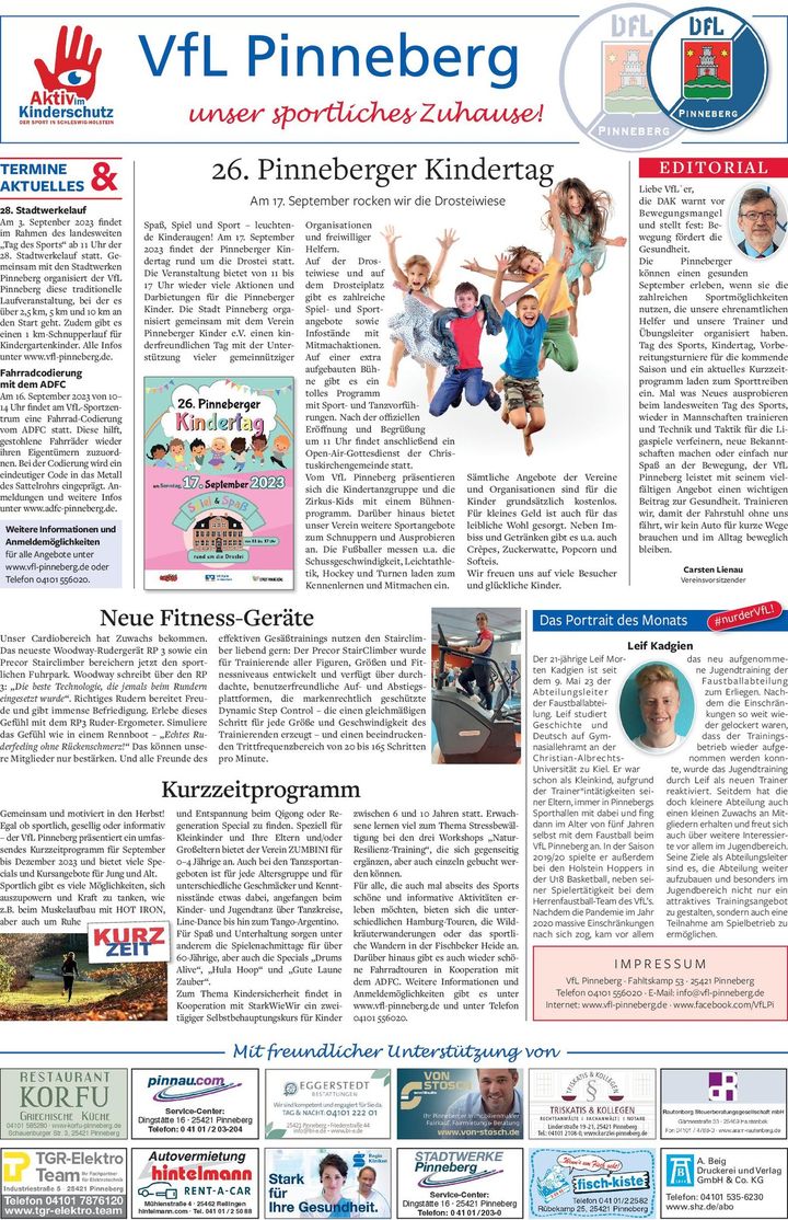 Mit dem Tag des Sports inkl. 28. Stadtwerkelauf hatten wir am 03.09.2023 einen super Start in den September. Zeitgleich ist unsere aktuelle Sonderseite im Pinneberger Tageblatt und im Tageblatt am Wochenende erschienen.