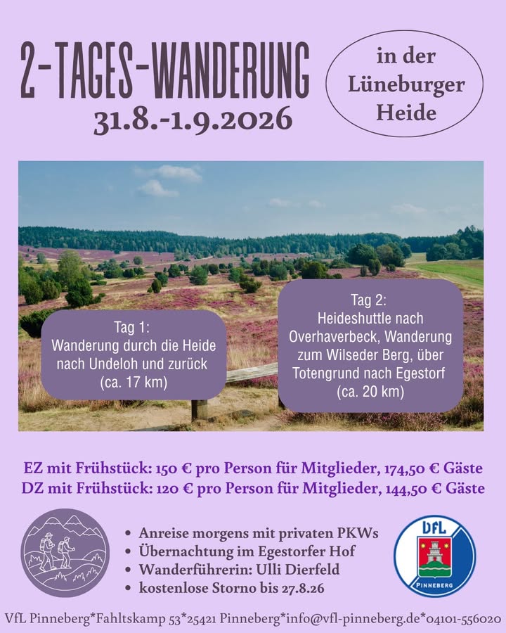 2 Tages Wanderung Lüneburger Heide vom 31.8.-1.9.2026