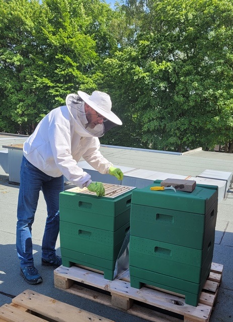 Ragnar Pohl hat 2021 seine Imkerausbildung abgeschlossen und ist Mitglied im Imkerverein Pinneberg und Umgebung e.V. Der langjährige VfL-Mitarbeiter sieht nun wöchentlich nach den VfL-Bienen, hegt und pflegt unsere neuen Mitglieder und passt auf, dass sich keine Krankheiten bilden und es den Völker gut geht. Wir können uns also in diesem Jahr auf den ersten vereinseigenen VfL-Honig freuen!
