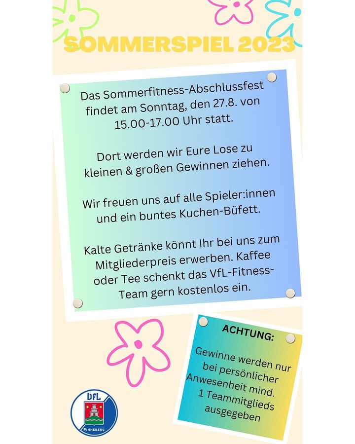 Endlich spielen wir wieder! Dieses Jahr kann man als 2er Team während der Sommerzeit Punkte sammeln. Schaut gern auf die Spielstation, die in der Lounge aufgebaut ist und informiert Euch beim VfL-Fitness-Team, falls Ihr Fragen habt. Wir führen eine Partnerbörse, falls jemand noch einen Spielpartn...