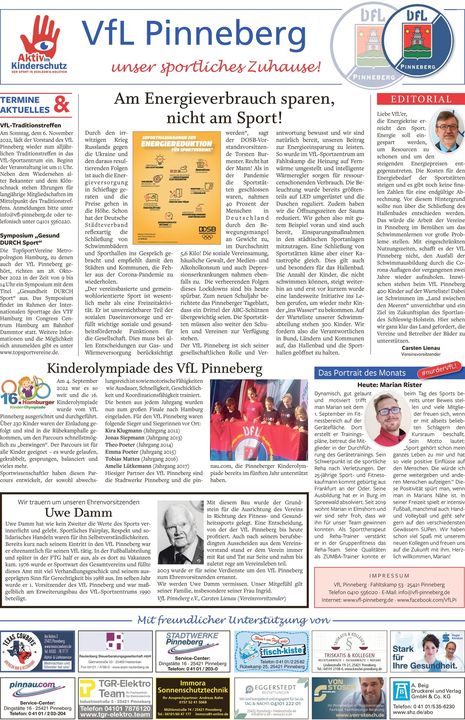 Die Energiekrise trifft natürlich auch unseren Verein mit voller Härte. Wir haben diverse Maßnahmen eingeleitet, um den Energieverbrauch in unserem Sportzentrum zu reduzieren. Gleichzeitig kämpfen wir um den Erhalt des Pinneberger Hallenbads und appellieren an die Stadt Pinneberg, dass das Bad für den Vereinssport erhalten bleibt.