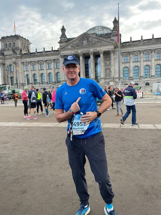 Aber die Leistungssteigerung von Manfred „Max“ Merchel um satte 20 Minuten ist ebenso bemerkenswert! Im blauen Laufshirt des VfL Pinneberg und VfL-Cap gehörte er zudem zu bestangezogenen Läufern in Berlin