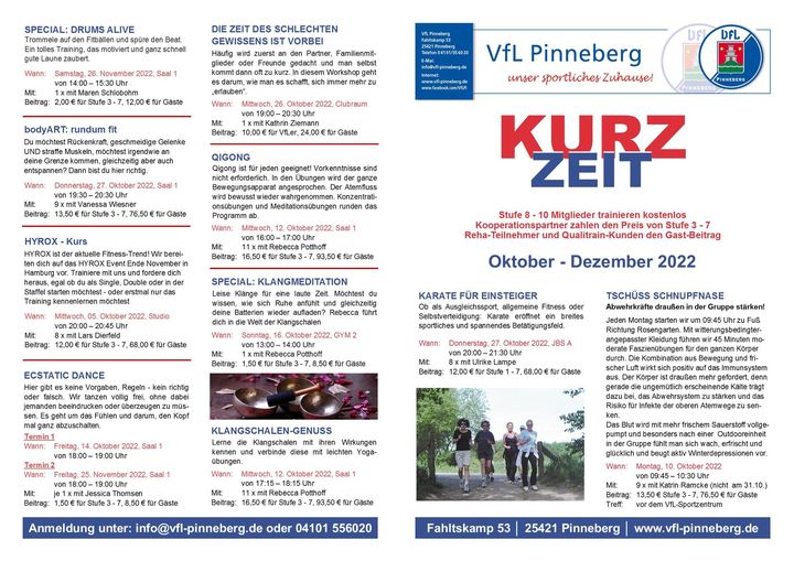 Anmeldungen über www.vfl-pinneberg.de oder 04101 / 55 60 20