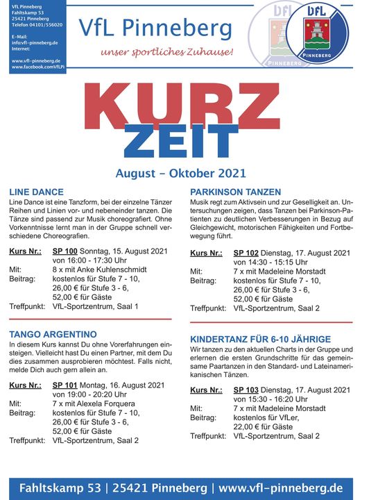 Ich freue mich riesig Euch ankündigen zu dürfen, dass nun auch in Pinneberg beim VfL Pinneberg e.V. meine Kurse wieder starten‼️ 🥰