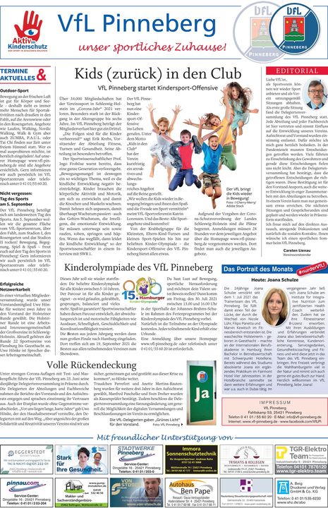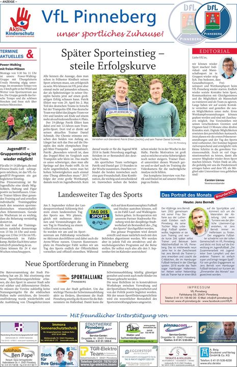 Hierüber berichten wir in unserer neuesten Ausgabe der monatlichen Sonderseite des VfL Pinneberg im Pinneberger Tageblatt und im "Tip - Tageblatt am Sonntag".