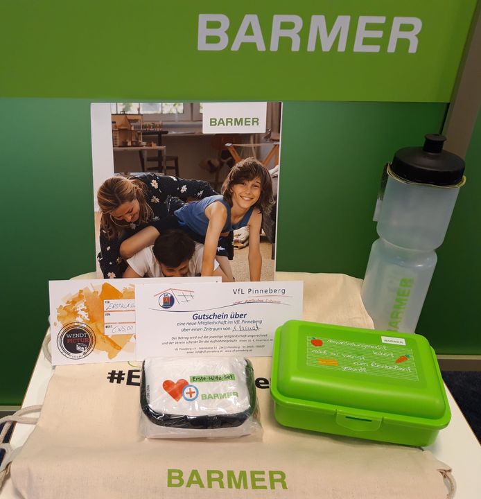 Die Pinneberger Kindergärten haben Gutscheine erhalten, die sie an die zukünftigen Erstklässler verteilen können. Bei Interesse kann sich dann bei der BARMER ein Schulstart-SET abgeholt werden mit diesem tollen Inhalt: eine BARMER- Brotdose aus Zellulose, eine Bio Trinkflasche aus 95% Zuckerrohr, eine Erste-Hilfe-Set sowie ein Gutschein über eine Mitgliedschaft im VfL Pinneberg über einen Zeitraum von 1 Monat, einen Gutschein über 25 Euro für Einschulungsfotos von Wendt Pictures sowie einen Gutschein für einen Brustbeutel von Lederwaren Liedtke.