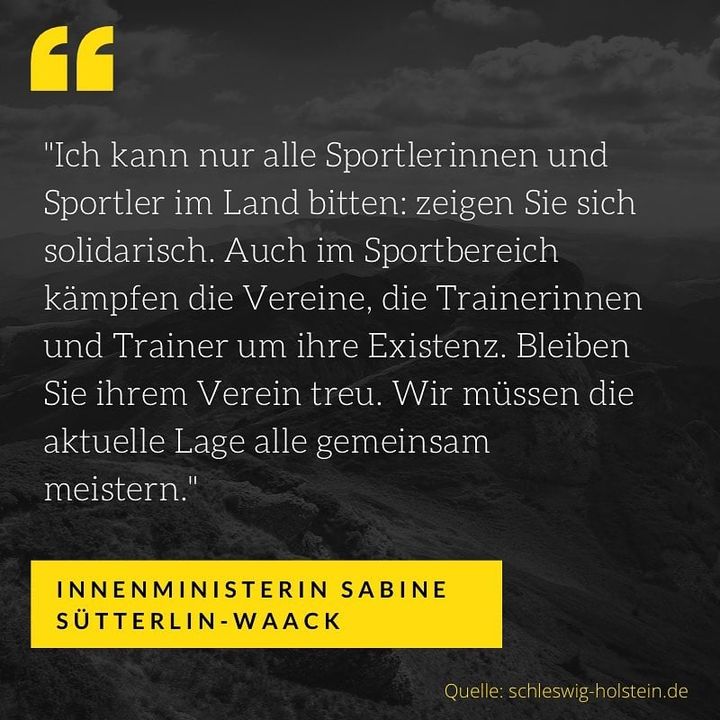 Auch die Politik hat festgestellt: Deutschlands Sportvereine haben ein Problem. Wir bewegen jung & alt unabhängig von Einkommen, Geschlecht oder Herkunft. Wir bieten Gemeinschaft und die Möglichkeit, Verantwortung zu lernen und zu übernehmen. Vereinssport verbindet Menschen und vermittelt gesellschaftliche Werte. Es ist keine Selbstverständlichkeit, dass die schleswig-holsteinischen Sportvereine auch nach der Pandemie noch existieren. Es liegt an uns allen. Bleibt solidarisch, bleibt Mitglied und nutzt unsere Angebote digital & vor Ort.