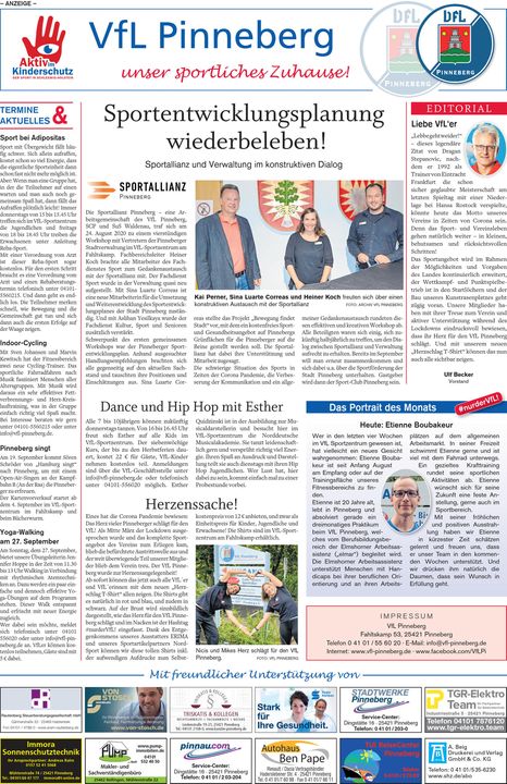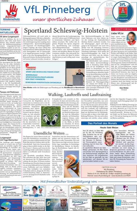 Heute im Pinnebergerger Tageblatt und am Sonntag im "Tip": Die monatliche Sonderseite des VfL Pinneberg mit aktuellen Berichten aus der Vereinsarbeit.