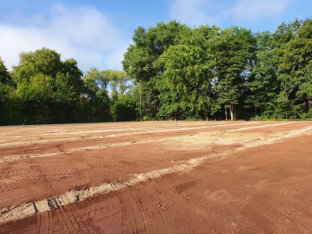 Der kombinierte Fußball- und Hockeykunstrasenplatz nimmt immer mehr Gestalt an. Die Pflasterarbeiten rund um den Platz sind nahezu abgeschlossen und der alte Grandbelag des Stadion II wird für den neuen Kunstrasenbelag vorbereitet. Wir befinden uns weiterhin im Zeitplan freuen uns wie Bolle auf den neuen Platz!