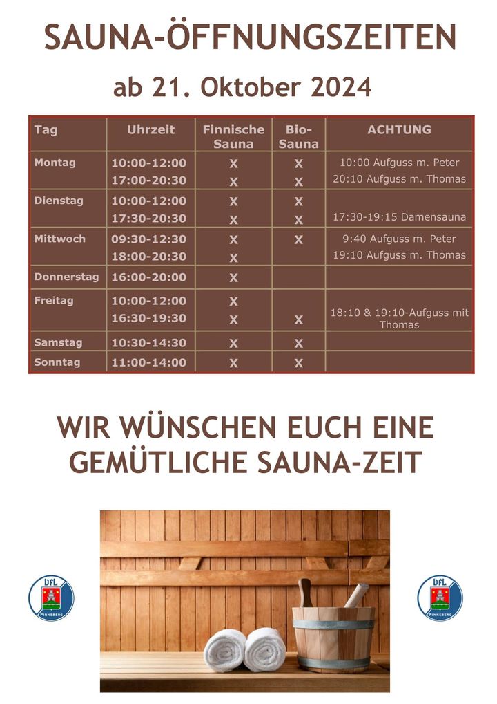 Ab kommenden Montag ändern sich die Saunazeiten zur Wintersaison mit einer kleinen Erweiterung. Danke, dass Ihr zum globalen Energiesparen mit beitragt.