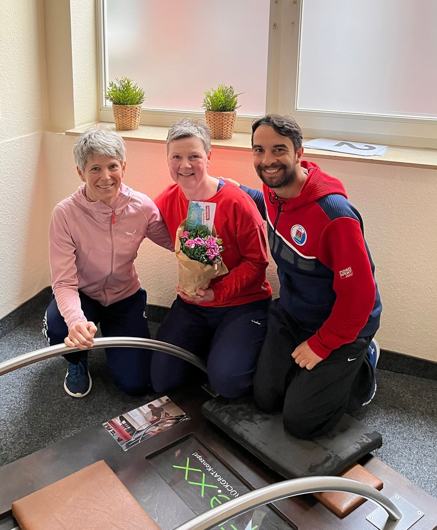 Mit 24 Jahren gab sie ihre ersten Step-Aerobic- und Bodyforming-Stunden in unserem VfL und letzte Woche mit nun 61 Jahren ihre letzte Stunde im Sanften Fahrradfahren. „Ich gehe NICHT in den Ruhestand“: diese Aussage ist Britta Müller wichtig. Sie war seit jeher neben dem Sport aktiv – als Unternehmer-Frau in den eigenen Betrieben, in der Familie, in der Freizeit und in den geliebten Wohnmobil-Auszeiten. Daher gibt es auch jetzt mit einem weiteren Unternehmen noch genügend zu tun. Fünf Sportgruppen und ein großer Kollegen-Kreis werden sie schmerzlich vermissen. Vor fast genau 20 Jahren war sie es, die den Begriff des „Sanften Fahrradfahren“ prägte. Als der Fitnessbereich damals das Indoor-Cycling implementierte, war es Brittü wichtig, dass auch die ältere Generation von den Vorzügen dieses vielseitigen Formats profitierte. Sie konzipierte ein eigenes Programm, begeisterte weitere Kollegen und machte Hunderte von Senioren herzkreislauf-fit. Wir wünschen Brittü, die bei uns seit Beginn so genannt wird, weil es damals mehrere „Brittas“ gab, alles Liebe und Gute für ihren Unruhestand, bedanken uns herzlich für Ihr Wirken im VfL und freuen uns, wenn sie im Herbst zum angekündigten Besuch vorbeischaut.