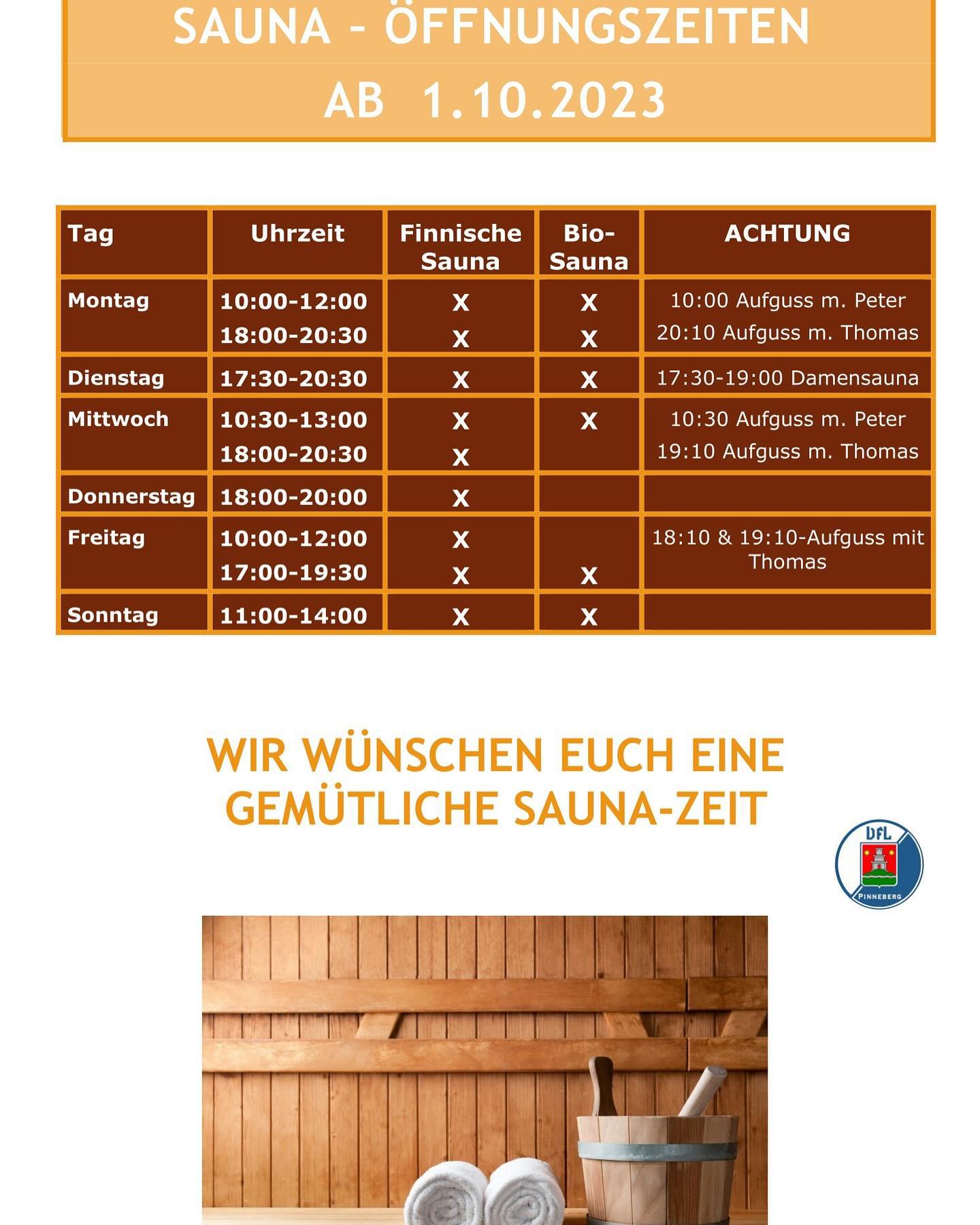 Neue Öffnungszeiten der Sauna ab Oktober