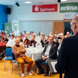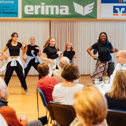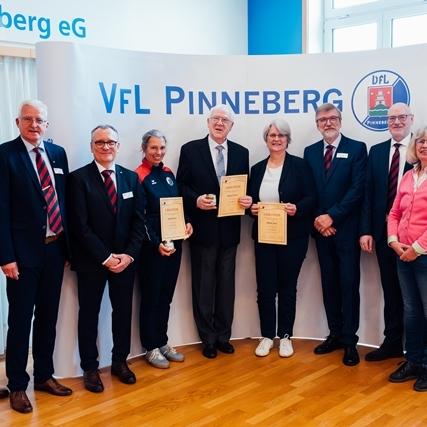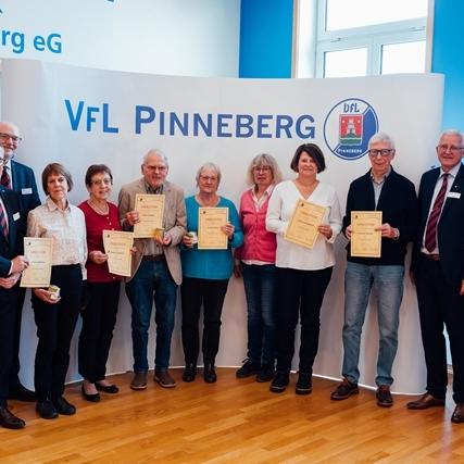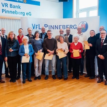 Es war voll am Fahltskamp. Mit 120 Teilnehmenden konnte sich der VfL-Vorstand über eine Rekordbeteiligung beim alljährlichen Traditionstreffen freuen. Zum Auftakt heizten die Fit-Teens mit einer fetzigen K-Pop-Einlage ein und nach der Begrüßung durch Uwe Hönke wurden unter der Moderation von Hermann Kunstmann die ersten Ehrungen für 25 und 40 Jahre VfL-Mitgliedschaften durchgeführt. Es folgte ein Einlage der Line-Dance-Gruppe, bevor besonders engagierten VfL-Mitgliedern Verdienstnadeln als Dank für ihren Einsatz überreicht wurde. Meike Jung (Volleyball), Sonja Peters (FTG) und Heinz Stickel (TSA) erhielten eine Silberne Verdienstnadel und der langjährige Kassenprüfer Manfred Paschelke wurde mit einer Goldenen Verdienstnadel ausgezeichnet. Die Laudationes über die Verdienste der ehrenamtlich Engagierten wurden von Ulf Becker gehalten. Goldig ging es danach weiter mit der Verleihung von Ehrennadeln für eine 50jährige Mitgliedschaft. Zum Ende wurden schließlich noch Ehrenbriefe für ununterbrochene 60-, 70- und 75jährige VfL-Mitgliedschaften verliehen. Diese wurden vom Ehrenvorsitzenden Carsten Lienau moderiert. Beim anschließenden Klönschnack bei Kaffee und Schnittchen wurden noch tolle Gespräche geführt, in Erinnerungen geschwelgt und bereits der Blick auf das nächste VfL-Sportjahr geworfen.
