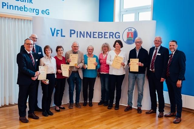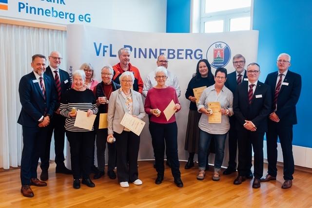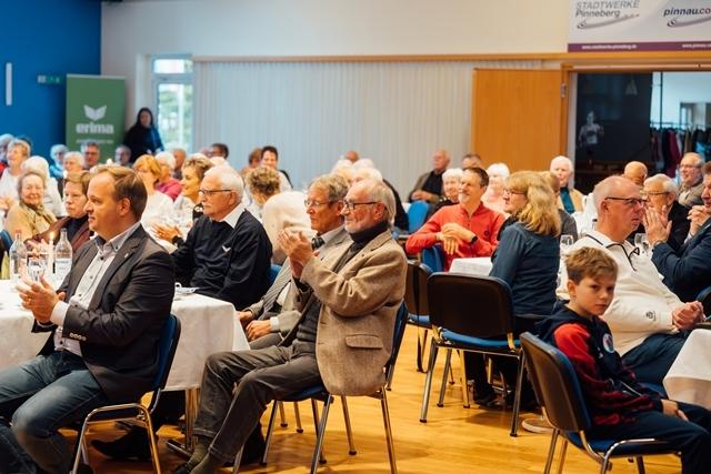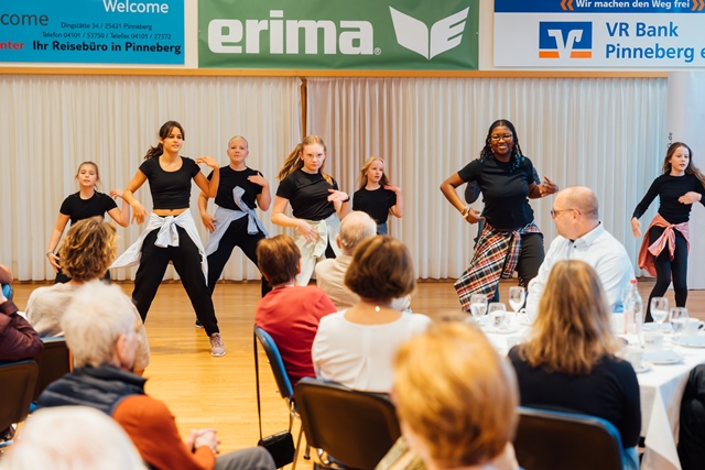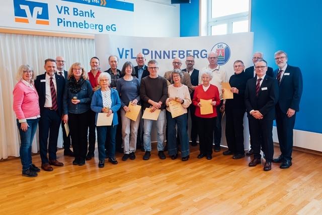 Es war voll am Fahltskamp. Mit 120 Teilnehmenden konnte sich der VfL-Vorstand über eine Rekordbeteiligung beim alljährlichen Traditionstreffen freuen. Zum Auftakt heizten die Fit-Teens mit einer fetzigen K-Pop-Einlage ein und nach der Begrüßung durch Uwe Hönke wurden unter der Moderation von Hermann Kunstmann die ersten Ehrungen für 25 und 40 Jahre VfL-Mitgliedschaften durchgeführt. Es folgte ein Einlage der Line-Dance-Gruppe, bevor besonders engagierten VfL-Mitgliedern Verdienstnadeln als Dank für ihren Einsatz überreicht wurde. Meike Jung (Volleyball), Sonja Peters (FTG) und Heinz Stickel (TSA) erhielten eine Silberne Verdienstnadel und der langjährige Kassenprüfer Manfred Paschelke wurde mit einer Goldenen Verdienstnadel ausgezeichnet. Die Laudationes über die Verdienste der ehrenamtlich Engagierten wurden von Ulf Becker gehalten. Goldig ging es danach weiter mit der Verleihung von Ehrennadeln für eine 50jährige Mitgliedschaft. Zum Ende wurden schließlich noch Ehrenbriefe für ununterbrochene 60-, 70- und 75jährige VfL-Mitgliedschaften verliehen. Diese wurden vom Ehrenvorsitzenden Carsten Lienau moderiert. Beim anschließenden Klönschnack bei Kaffee und Schnittchen wurden noch tolle Gespräche geführt, in Erinnerungen geschwelgt und bereits der Blick auf das nächste VfL-Sportjahr geworfen.