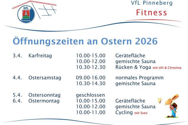 Öffnungszeiten an den Osterfeiertagen im Fitnessbereich