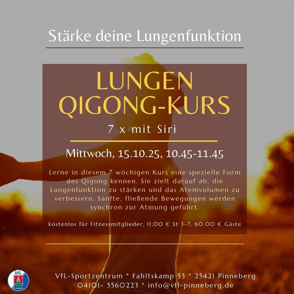 Lerne in diesem 7 wöchigen Kurs eine spezielle Form des Qigong kennen. Sie zielt darauf ab, die Lungenfunktion zu stärken und das Atemvolumen zu verbessern. Sanfte, fließende Bewegungen werden synchron zur Atmung geführt.
