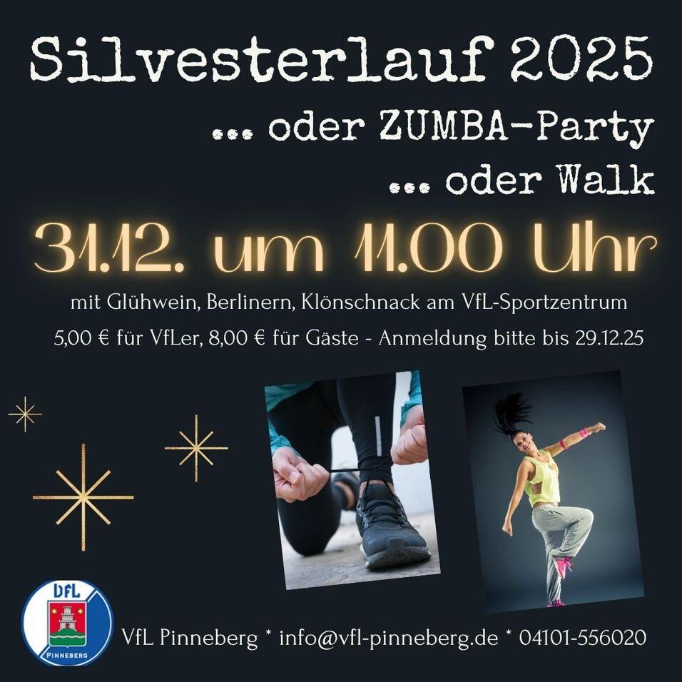 Am Silvestervormittag laden wir wieder zum Silvesterlauf, zum Walking (pur, Nordic Walking und Smovey Walking) und zur ZUMBA-Party ein. Start ist um 11:00 Uhr am VfL-Sportzentrum.
