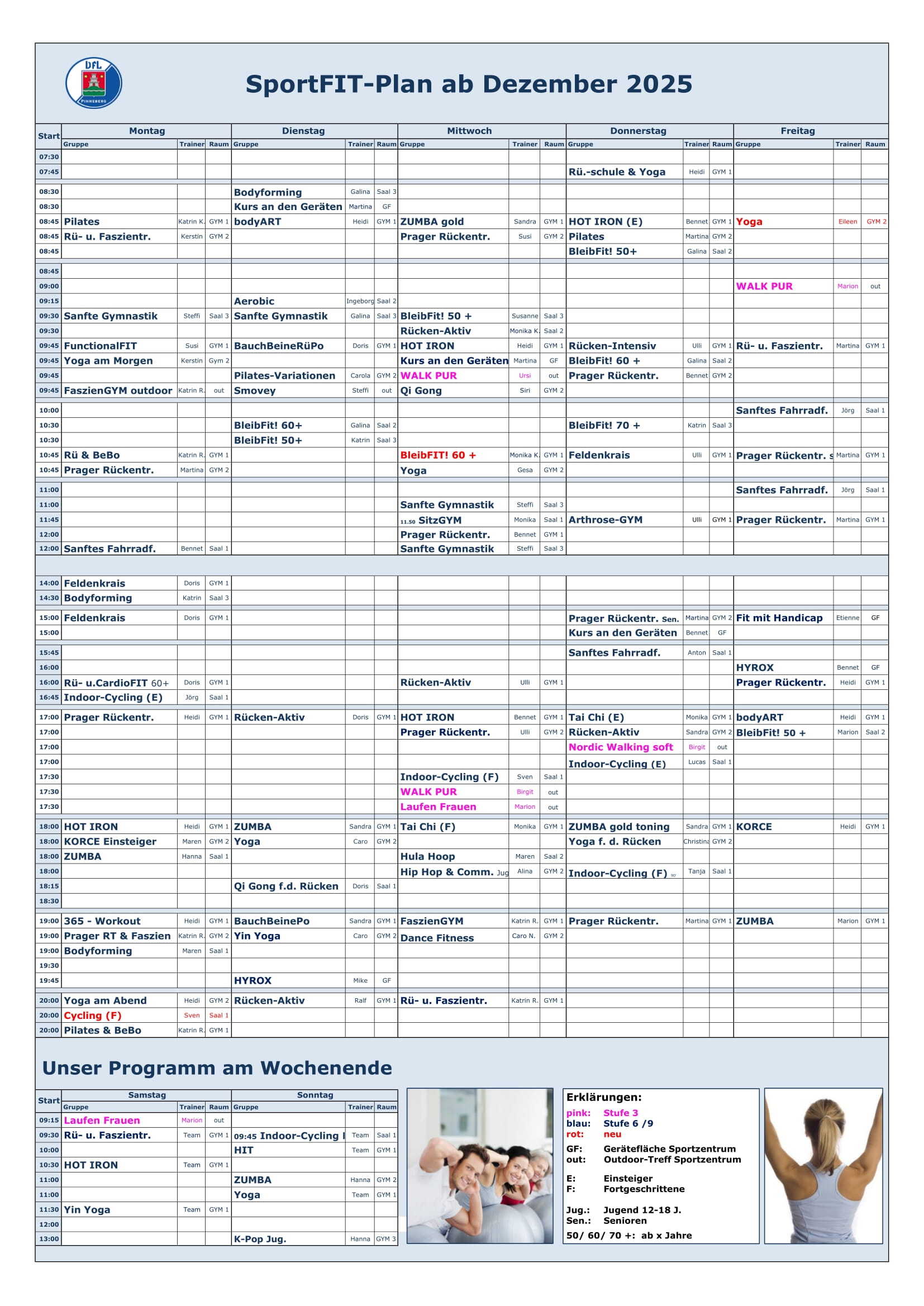 Dieser Gruppenfitness-Plan gilt ab dem 1. Dezember 2025.