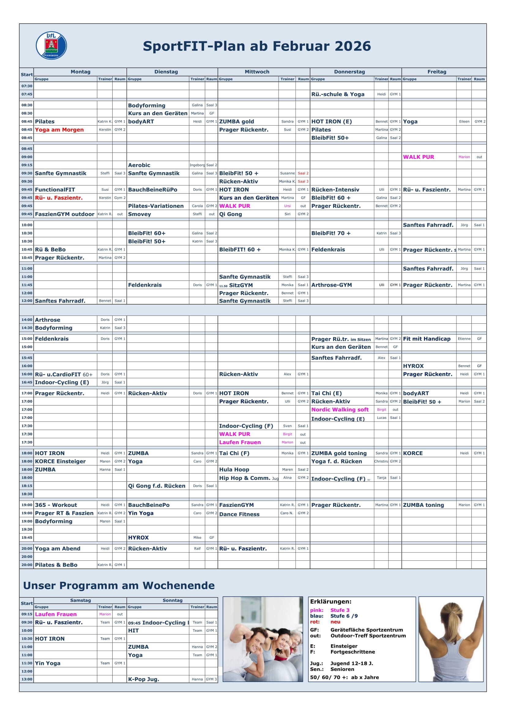 Dieser Gruppenfitness-Plan gilt ab dem 1. Februar 2026.