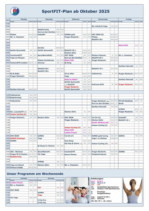 Klassiker wie Bodyforming, FunctionalFIT oder Aerobic, aber auch Neuartiges wie 365-Workout, KORCE, Faszien-GYM, Hula Hoop, bodyART, ZUMBA … laden zum Ausprobieren ein.